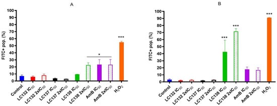 - Scariot, D.B.; Britta, E.A.; Moreira, A.L.; Falzirolli, H.; Silva, C.C.; Ueda-Nakamura, T.; Dias-Filho, B.P.; Nakamura, C.V. Induction of Early Autophagic Process on Leishmania amazonensis by Synergistic Effect of Miltefosine and Innovative Semi-Synthetic Thiosemicarbazone. Front. Microbiol. 2017, 8, 255. [Google Scholar] [CrossRef]