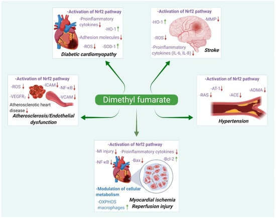 APA StyleThomas, S. D., Jha, N. K., Sadek, B., & Ojha, S. (2022). Repurposing Dimethyl Fumarate for Cardiovascular Diseases: Pharmacological Effects, Molecular Mechanisms, and Therapeutic Promise. Pharmaceuticals, 15(5), 497. https://doi.org/10.3390/ph15050497