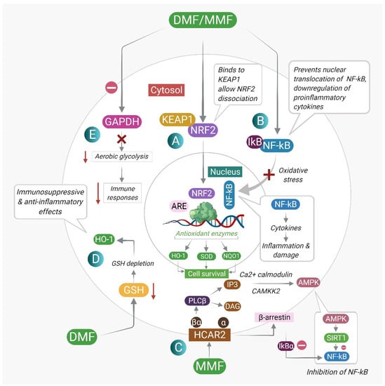 - Gillard, G.O.; Collette, B.; Anderson, J.; Chao, J.; Scannevin, R.; Huss, D.J.; Fontenot, J.D. DMF, but not other fumarates, inhibits NF-κB activity in vitro in an Nrf2-independent manner. J. Neuroimmunol. 2015, 283, 74–85. [Google Scholar] [CrossRef] [Green Version]
