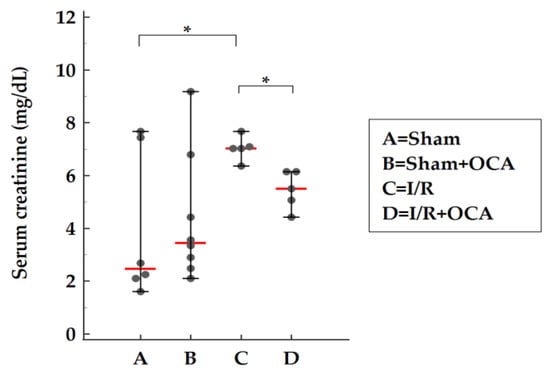 2.3. OCA Treatment Reduces Serum Levels of Creatinine