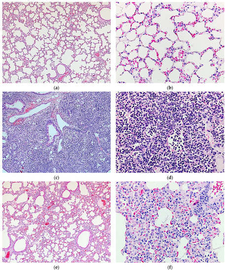 - Faffe, D.S.; Seidl, V.R.; Chagas, P.S.; Gonçalves de Moraes, V.L.; Capelozzi, V.L.; Rocco, P.R.; Zin, W.A. Respiratory Effects of Lipopolysaccharide-Induced Inflammatory Lung Injury in Mice. Eur. Respir. J. 2000, 15, 85–91. [Google Scholar] [CrossRef]