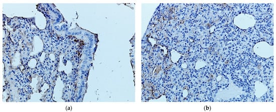 Pulmonary macrophages play important protective roles in the lungs, maintaining innate immunity in the respiratory system. At least two populations of macrophages are recognized in the healthy lung: alveolar macrophages, freely localized in the airways, and resident or interstitial macrophages, located in the lung parenchyma [34]. Lung macrophages are long-lived cells, and their repopulation occurs due to in situ proliferation but not from the bone marrow [35,36].
