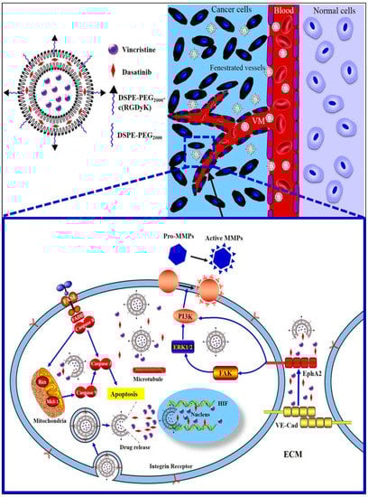 - Zeng, F.; Ju, R.J.; Liu, L.; Xie, H.J.; Mu, L.M.; Zhao, Y.; Yan, Y.; Hu, Y.J.; Wu, J.S.; Lu, W.L. Application of functional vincristine plus dasatinib liposomes to deletion of vasculogenic mimicry channels in triple-negative breast cancer. Oncotarget 2015, 6, 36625–36642. [Google Scholar] [CrossRef]