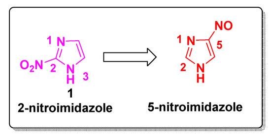 Chemical structure of 2-nitroimidazole and 5-nitroimidazole.