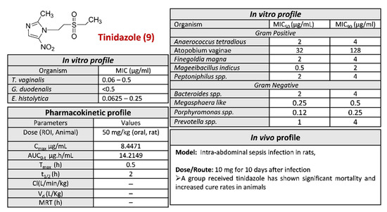 - Hillier, K. Secnidazole. Drugs Future 1979, 4, 280. [Google Scholar] [CrossRef]