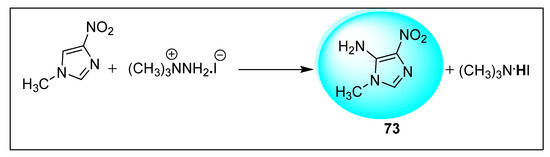 - Yao, F.; Zhihua, D.; Shasha, Y.; Haozhe, Y.; Yunqu, P.; Wu, T.; Zuo, H.; Yongjun, Z.; Shen, C.; Hongfu, W. Method for synthesizing 1,2-dimethyl-5-nitroimidazole. CN Patent CN 108689941, 8 June 2018. [Google Scholar]