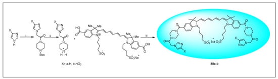 Papadopoulou (2009) synthesized nitroimidazole-based bio-reductive compounds having a quinazoline (41, NLQZ-1) or a naphthyridine moiety (42, NLPP-1, (Scheme 14). The synthesized compounds were evaluated against V79 and A549 cells for their cytotoxicity, radiosensitization and interaction with chemotherapeutic agents by using the clonogenic assay, and the results revealed that the hypoxic selectivity was slightly increased as in the case of 42 (NLPP-1), where it ranged from 12–19 in V79 and 15–26 in A549 cells. Both compounds have shown better radiosensitizer against hypoxic V79 cells at nontoxic concentrations, as shown in Table 3. Both compounds have shown a synergistic effect with cisplatin or melphalan in V79 cells under hypoxic pre-exposure conditions [76].