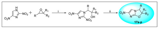 - Sasaki, H.; Haraguchi, Y.; Itotani, M.; Kuroda, H.; Hashizume, H.; Tomishige, T.; Kawasaki, M.; Matsumoto, M.; Komatsu, M.; Tsubouchi, H. Synthesis and antituberculosis activity of a novel series of optically active 6-nitro-2, 3-dihydroimidazo [2, 1-b] oxazoles. J. Med. Chem. 2006, 49, 7854–7860. [Google Scholar] [CrossRef]