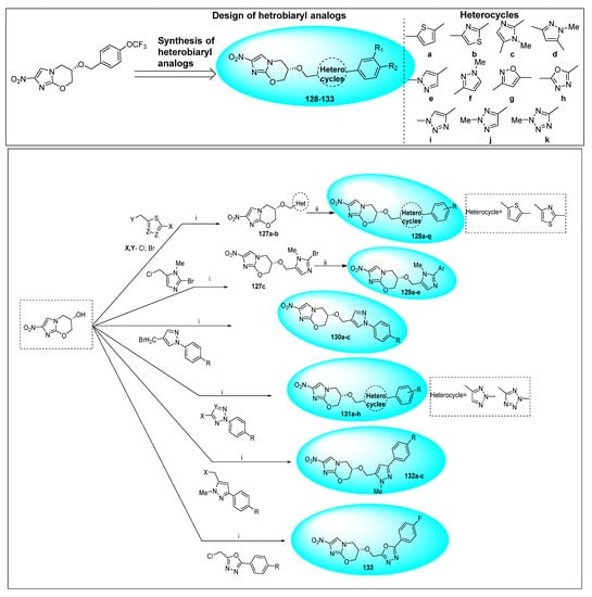 - Sutherland, H.S.; Blaser, A.; Kmentova, I.; Franzblau, S.G.; Wan, B.; Wang, Y.; Ma, Z.; Palmer, B.D.; Denny, W.A.; Thompson, A.M. Synthesis and structure−activity relationships of antitubercular 2-nitroimidazooxazines bearing heterocyclic side chains. J. Med. Chem. 2010, 53, 855–866. [Google Scholar] [CrossRef] [PubMed]