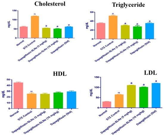 Unnisa, A.; Chettupalli, A.K.; Al Hagbani, T.; Khalid, M.; Jandrajupalli, S.B.; Chandolu, S.; Hussain, T. Development of Dapagliflozin Solid Lipid Nanoparticles as a Novel Carrier for Oral Delivery: Statistical Design, Optimization, In-Vitro and In-Vivo Characterization, and Evaluation. Pharmaceuticals 2022, 15, 568. https://doi.org/10.3390/ph15050568