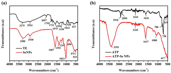 3.3. Characterization of SeNPs and ATP-SeNPs