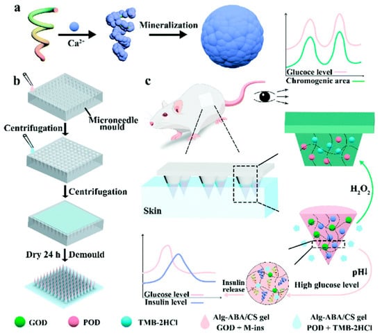 - Yu, W.J.; Jiang, G.H.; Zhang, Y.; Liu, D.P.; Xu, B.; Zhou, J.Y. Polymer microneedles fabricated from alginate and hyaluronate for transdermal delivery of insulin. Mater. Sci. Eng. C-Mater. Biol. Appl. 2017, 80, 187–196. [Google Scholar] [CrossRef] [PubMed]