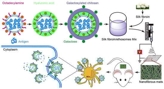 - Yang, X.; Wang, X.; Hong, H.; Elfawal, G.; Lin, S.; Wu, J.; Jiang, Y.; He, C.; Mo, X.; Kai, G.; et al. Galactosylated chitosan-modified ethosomes combined with silk fibroin nanofibers is useful in transcutaneous immunization. J. Control. Release 2020, 327, 88–99. [Google Scholar] [CrossRef]