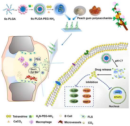 - Hu, H.; Ruan, H.; Ruan, S.; Pei, L.; Jing, Q.; Wu, T.; Hou, X.; Xu, H.; Wang, Y.; Feng, N.; et al. Acid-responsive PEGylated branching PLGA nanoparticles integrated into dissolving microneedles enhance local treatment of arthritis. Chem. Eng. J. 2022, 431, 134196. [Google Scholar] [CrossRef]