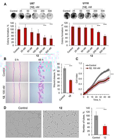 2.2.7. Soloxolone Tryptamide 12 Displayed Significant Antitumor Potential against Glioblastoma Cells at Non-Toxic Concentrations