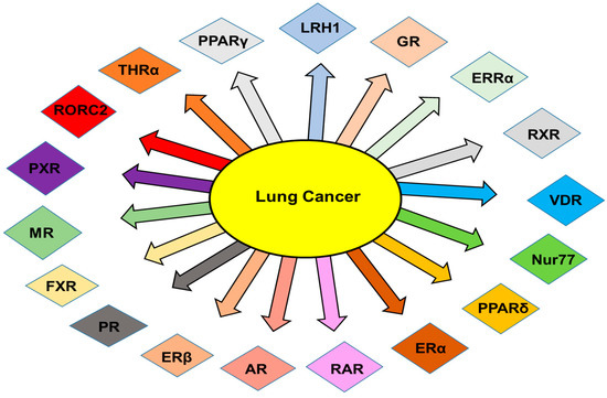 Different types of NRs implicated in lung cancer.