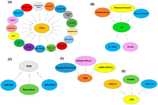LXRα (NR1H3) and LXRβ (NR1H2) are two isotypes of ligand-activated NRs. LXRα expression is found in metabolically active tissues such as the liver, fat, gut, kidney, skin, and macrophages, while LXRβ is found in all types of tissues [266]. LXRs control many genes involved in cholesterol homeostasis, including cholesterol absorption, storage, catabolism, and transport [266,267,268]. They also have a role in the regulation of cell growth in a variety of cell types [54,269,270].