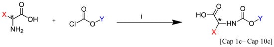 As for the preparation of the required intermediate carbamates (1c–10c, summarized in Table 2), amino acids and chloroformates were treated under Schotten–Baumann conditions in the presence of NaOH and dioxane as shown in Scheme 3.