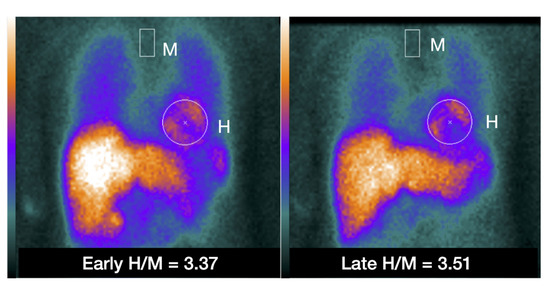 - Nakajima, K.; Nakata, T.; Matsuo, S.; Jacobson, A.F. Creation of mortality risk charts using 123I meta-iodobenzylguanidine heart-to-mediastinum ratio in patients with heart failure: 2- and 5-year risk models. Eur. Heart J. Cardiovasc. Imaging 2016, 17, 1138–1145. [Google Scholar] [CrossRef] [PubMed] [Green Version]