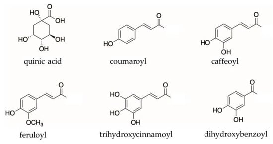 Selected structures of substituents associated with quinic acid.