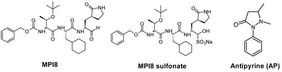 - Ma, X.R.; Alugubelli, Y.R.; Ma, Y.; Vatansever, E.C.; Scott, D.A.; Qiao, Y.; Yu, G.; Xu, S.; Liu, W.R. MPI8 is potent against SARS-CoV-2 by inhibiting dually and selectively the SARS-CoV-2 main protease and the host cathepsin L. ChemMedChem 2022, 17, e202100456. [Google Scholar] [CrossRef]