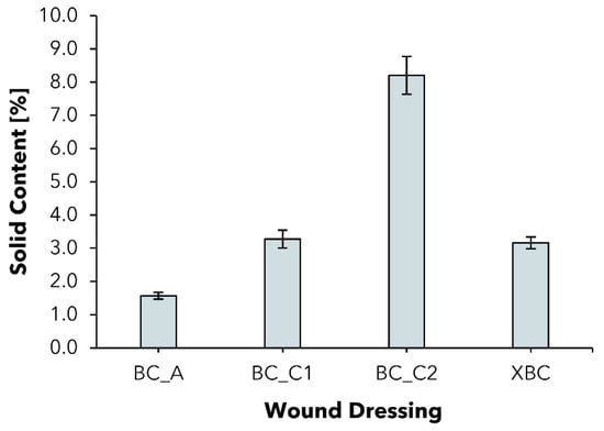 Solid content of wet bacterial cellulose wound dressings (mean ± SD; n = 8).