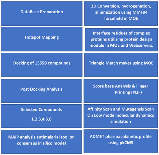 Protein–protein interactions (PPIs) play an important role in biological processes including in the pathogenesis of several disease and provides valuable targets for novel anti-malaria interventions. PPI modulators have already been approved and marketed in recent years and some have entered clinical trials [14]. Computational screening provides a valuable tool in drug discovery. The discovery of Venclexta as B-cell lymphoma 2 inhibitor in 2016 by fragment-based screen has shown the importance of PPI targeting [15]. Computational Drug designing techniques in the form of Docking, Virtual Screening, and Simulation have assisted and played a significant role in drug discovery for hit identification and lead optimization. Computational techniques are less costly and are more direct with effective screening [16]. Furthermore, it has been suggested that PPI inhibition by peptides, peptidomimetics, or small-molecule inhibitors may have the potential to interfere with binding domains for malarial targets [14]. The PPIs involved in host pathogen interactions are considered important targets for novel anti-malarial interventions [17].