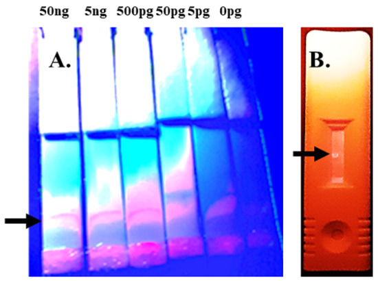 - Bruno, J.G. Application of DNA Aptamers and Quantum Dots to Lateral Flow Test Strips for Detection of Foodborne Pathogens with Improved Sensitivity versus Colloidal Gold. Pathogens 2014, 3, 341–355. [Google Scholar] [CrossRef] [PubMed]