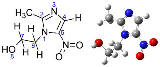 - Kossoski, F.; Varella, M.T.D.N. How does methylation suppress the electron-induced decomposition of 1-methyl-nitroimidazoles? J. Chem. Phys. 2017, 147, 164310. [Google Scholar] [CrossRef] [PubMed]