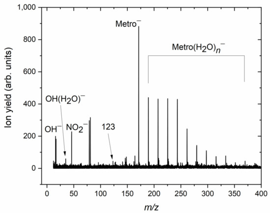 - Pandeti, S.; Feketeová, L.; Reddy, T.J.; Abdoul-Carime, H.; Farizon, B.; Farizon, M.; Märk, T.D. Nitroimidazolic radiosensitizers investigated by electrospray ionization time-of-flight mass spectrometry and density functional theory. RSC Adv. 2017, 7, 45211–45221. [Google Scholar] [CrossRef] [Green Version]