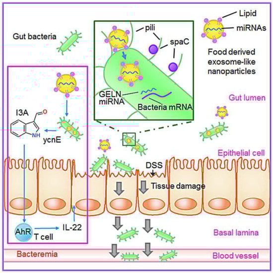 - Teng, Y.; Ren, Y. Plant-Derived Exosomal MicroRNAs Shape the Gut Microbiota. Cell Host Microbe 2018, 24, 637–652.e638. [Google Scholar] [CrossRef] [Green Version]