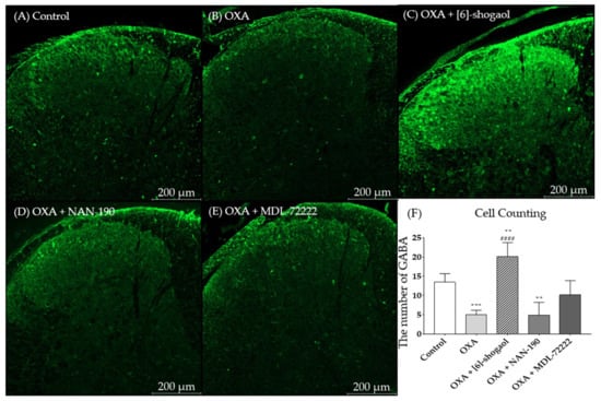2.5. [6]-Shogaol Increased GABA Concentration in the Superficial Laminae of the Dorsal Horn of the Mice Spinal Cord