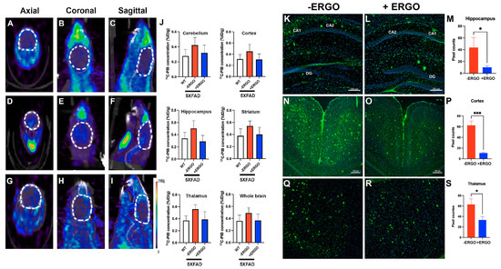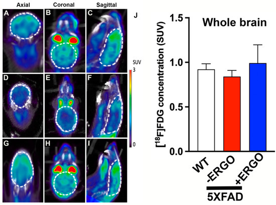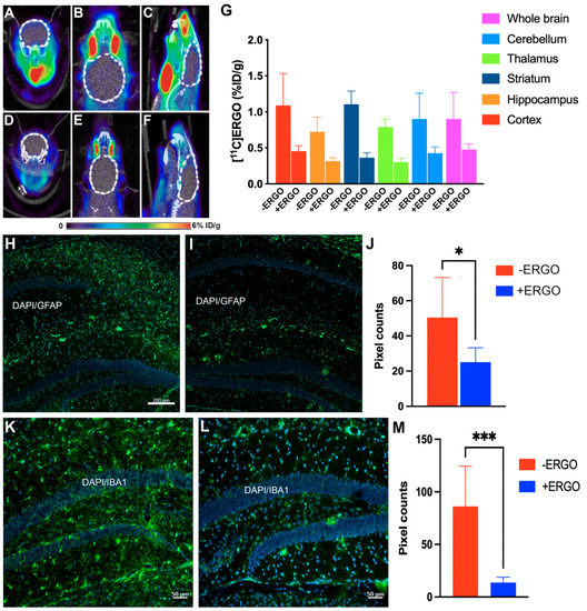 2.6. [11C]ERGO PET Radioligand Detects Oxidative Stress Reduction in ERGO-Treated 5XFAD Mice