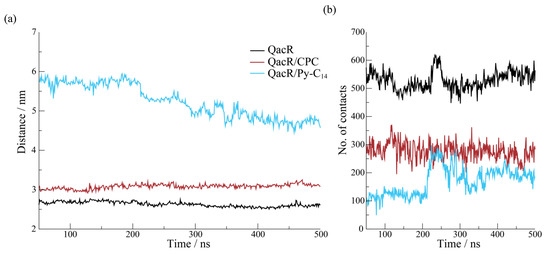 2.5. The Effect of Py-C14 Binding to the Transcriptional Factor QacR Dimer