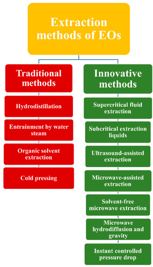 Possible extraction methods for EOs classified into traditional and innovative approaches [2].