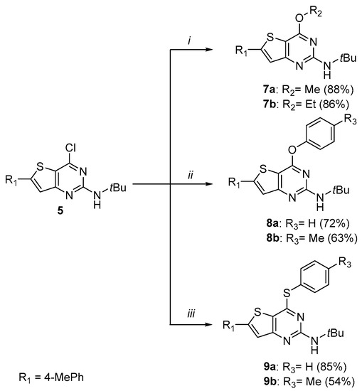 3.1.6. Synthesis of 4-Thioether-thieno[3,2-d]pyrimidines 9