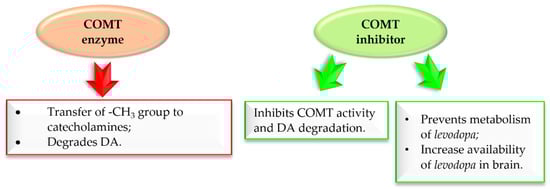 - Müller, T. Catechol-O-Methyltransferase Inhibitors in Parkinson’s Disease. Drugs 2015, 75, 157–174. [Google Scholar] [CrossRef] [PubMed]