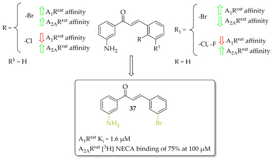 - Janse Van Rensburg, H.D.; Legoabe, L.J.; Terre’Blanche, G. Synthesis and Structure Activity Relationships of Chalcone Based Benzocycloalkanone Derivatives as Adenosine A1 and/or A2A Receptor Antagonists. Drug Res. (Stuttg) 2020, 70, 243–256. [Google Scholar] [CrossRef]