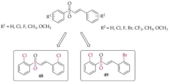 - Choi, J.W.; Kim, S.; Yoo, J.S.; Kim, H.J.; Kim, H.J.; Kim, B.E.; Lee, E.H.; Lee, Y.S.; Park, J.H.; Park, K.D. Development and Optimization of Halogenated Vinyl Sulfones as Nrf2 Activators for the Treatment of Parkinson’s Disease. Eur. J. Med. Chem. 2021, 212, 113103. [Google Scholar] [CrossRef] [PubMed]