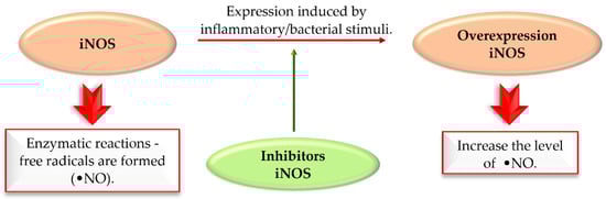 - Minhas, R.; Bansal, Y.; Bansal, G. Inducible Nitric Oxide Synthase Inhibitors: A Comprehensive Update. Med. Res. Rev. 2020, 40, 823–855. [Google Scholar] [CrossRef] [PubMed]