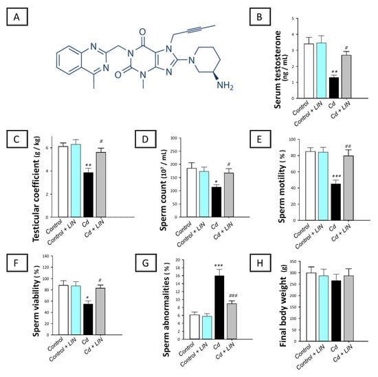 Arab HH, Elhemiely AA, El-Sheikh AAK, Khabbaz HJA, Arafa E-SA, Ashour AM, Kabel AM, Eid AH. Repositioning Linagliptin for the Mitigation of Cadmium-Induced Testicular Dysfunction in Rats: Targeting HMGB1/TLR4/NLRP3 Axis and Autophagy. Pharmaceuticals. 2022; 15(7):852. https://doi.org/10.3390/ph15070852