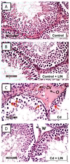 2.2. Linagliptin Administration Attenuates Cadmium-Induced Histological Lesions in Testes of Rats