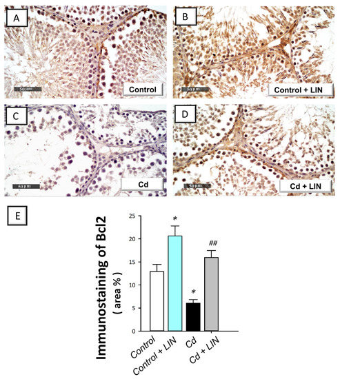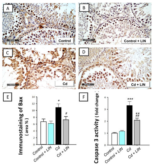 2.6. Linagliptin Administration Curbs Cadmium-Induced Pro-Apoptotic Events in Testes of Rats