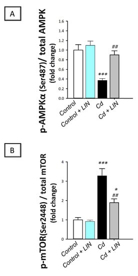 2.8. Linagliptin Administration Counteracts Cadmium-Induced AMPK/mTOR Pathway Inhibition in Testes of Rats
