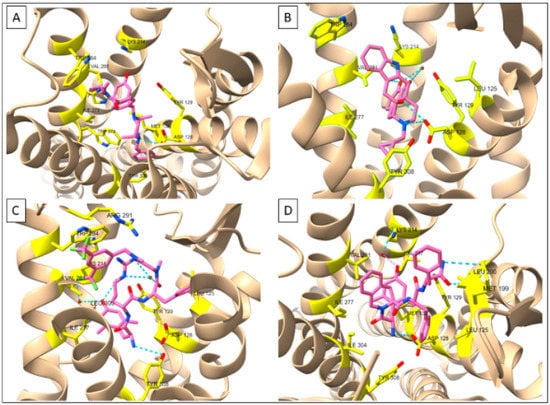 - Befort, K.; Tabbara, L.; Kling, D.; Maigret, B.; Kieffer, B.L. Role of aromatic transmembrane residues of the delta-opioid receptor in ligand recognition. J. Biol. Chem. 1996, 271, 10161–10168. [Google Scholar] [CrossRef]