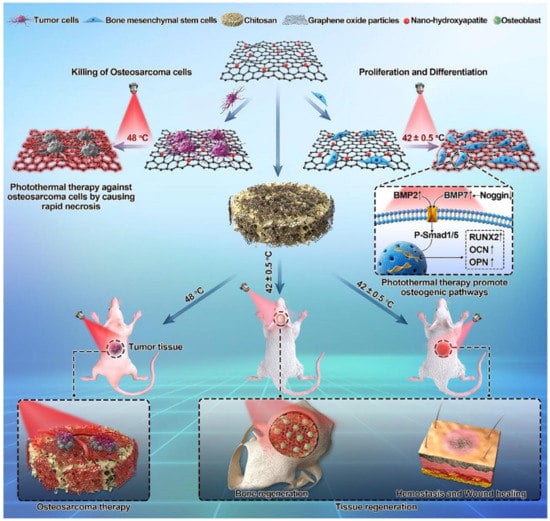 - Ma, L.; Feng, X.; Liang, H.; Wang, K.; Song, Y.; Tan, L.; Wang, B.; Luo, R.; Liao, Z.; Li, G.; et al. A novel photothermally controlled multifunctional scaffold for clinical treatment of osteosarcoma and tissue regeneration. Materials Today 2020, 36, 48–62. [Google Scholar] [CrossRef]