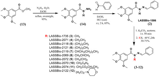 Synthetic methodology to obtain LASSBio-1586 (2) homologs and analogues from the starting material 13.