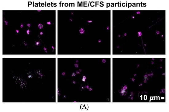 There are clear molecular mechanisms by which viral/bacterial infection and/or chronic inflammation may contribute to coagulation-based sequelae in ME/CFS. Platelets can sense and bind to both viruses and bacteria via a variety of platelet receptors, and dozens of viral and bacterial products stimulate platelets, modulating their function [35,36,37,38]. If these infections or associated inflammatory processes do not resolve, perpetual platelet stimulation by pathogens or their molecular products may lead to pathological platelet hyperactivation and clotting sequelae. Pro-inflammatory processes and chronic inflammation alone can also prompt the coagulation system to take on a hypercoagulable state [39,40,41,42,43,44,45].