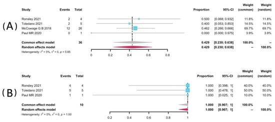 Forest plots for the objective response rate (A), and the disease control rate (B) in pNFs patients receiving trametinib.