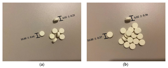 49]. The registered intra- and inter-batch variabilities are low, demonstrating that the type of cyclodextrin is not affecting the tablet dimensions or mass. The thickness of the tablets is around 4 mm, the diameter is 10 mm and the weight is around 300 mg for both formulations. The values met the European Pharmacopoeia requirements [